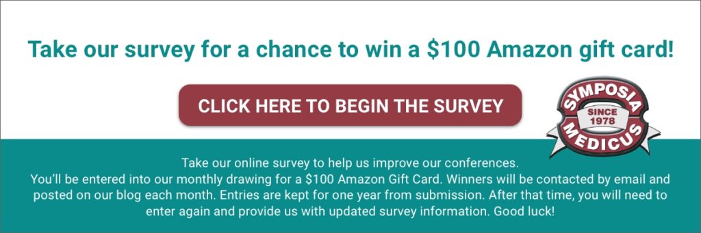 Congratulations to Evan L. M., DO from Pennsylvania (November) and Holly W., MSN from Massachusetts (December), winners of our last two drawings for 2025. Both completed the Symposia Medicus’ General Survey and were entered into the monthly drawing. Each received a $100 Amazon gift card.
